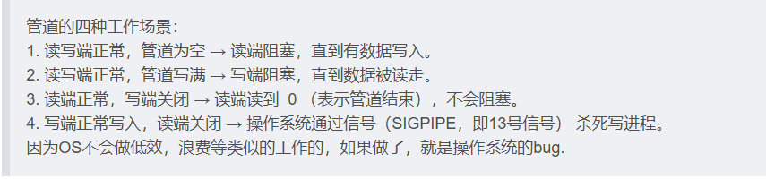 - 管道是内存文件(无需刷盘),内核维护“文件缓冲区”作为通信载体。