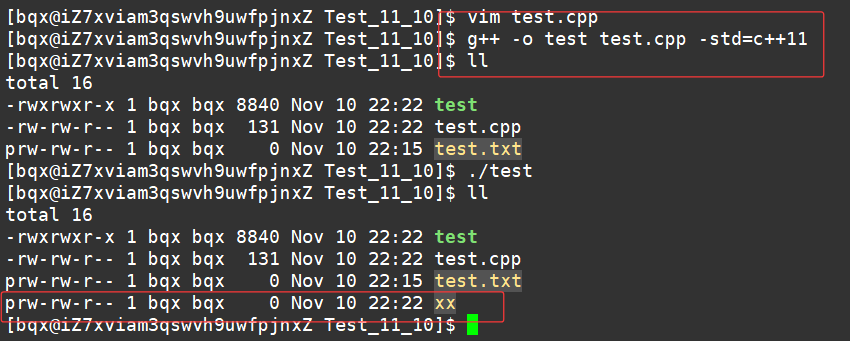 int main(int argc, char *argv[]) { mkfifo("xx", 0644); return 0; }