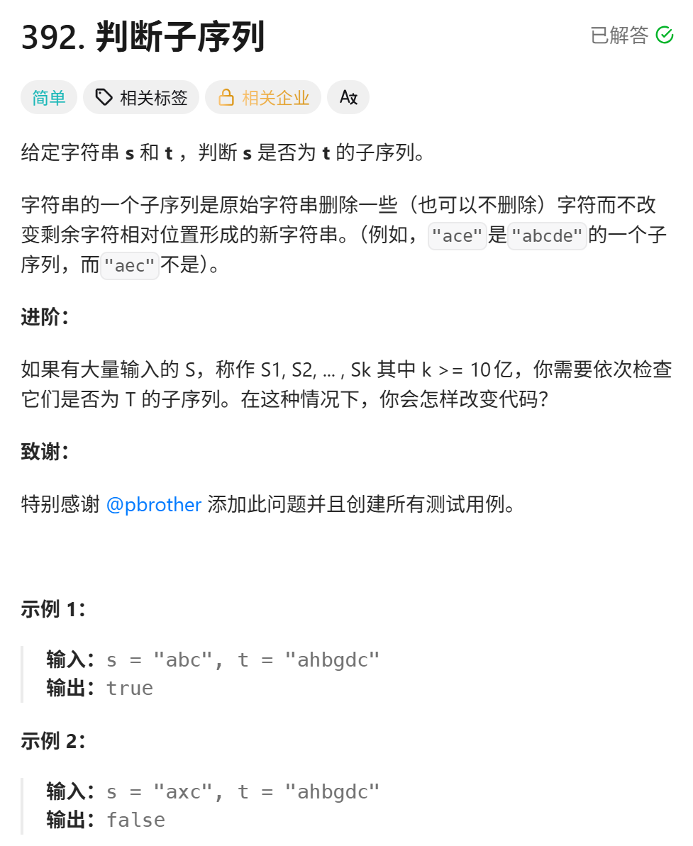 392. 判断子序列