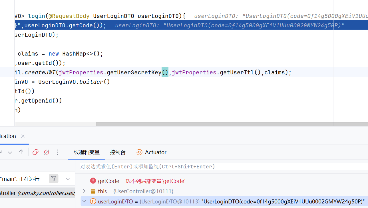String openid = getOpenid(userLoginDTO.getCode());