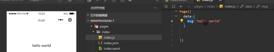 index.wxml中显示: