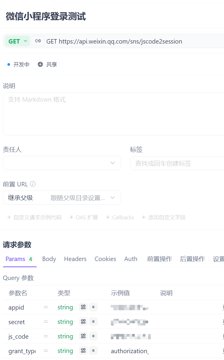 微信接口为:https://api.weixin.qq.com/sns/jscode2session