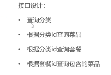 分析一下,需要分类接口,查询菜品接口,查询套餐接口,根据套餐id查询套餐接口