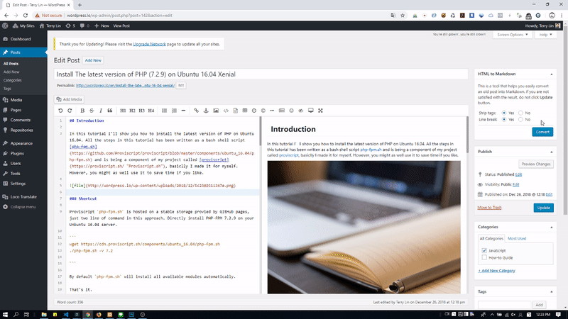 将Markdown解析为HTML,将解析后的HTML内容保存到中wp_posts。post_content。