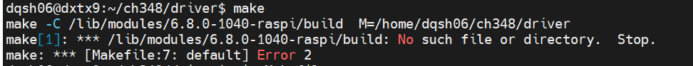 按照使用说明,将驱动拷到树莓派之后,输入make命令。结果是: