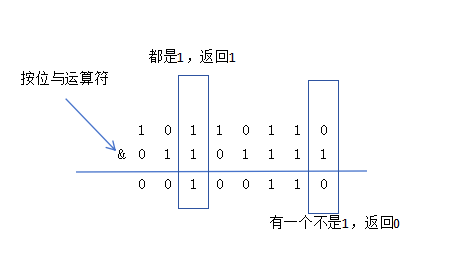 按位与运算,就是两个二进制位都为1时返回1,否则为0。运算针对两个操作数的每一个二进制位独立进行,与其他位无关。例如: