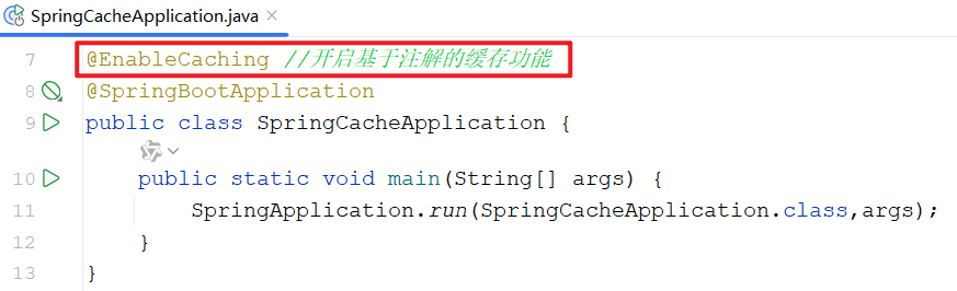 @EnableCaching注解标注在启动类或者配置类上,用于开启基于注解的缓存功能