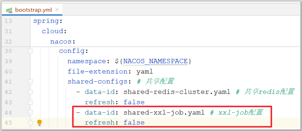 3.然后在bootstrap.yml文件下进行配置(具体配置被配置在了nacos当中):