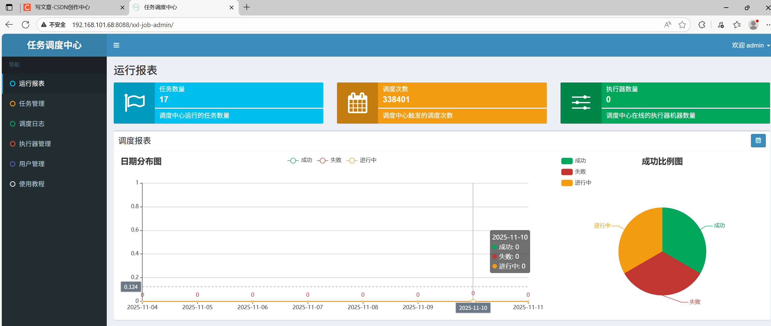1.我们已经在虚拟机当中安装好了xxl-job的容器,只需要访问以下地址即可:http://192.168.101.68:8088/xxl-job-admin/;输入账号密码后登入: