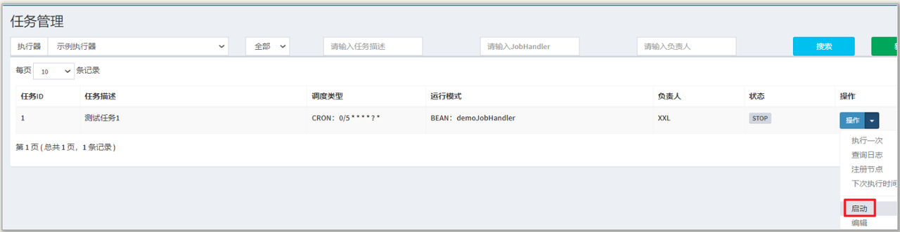 重启微服务,然后启动任务(或者选择执行一次),观察效果