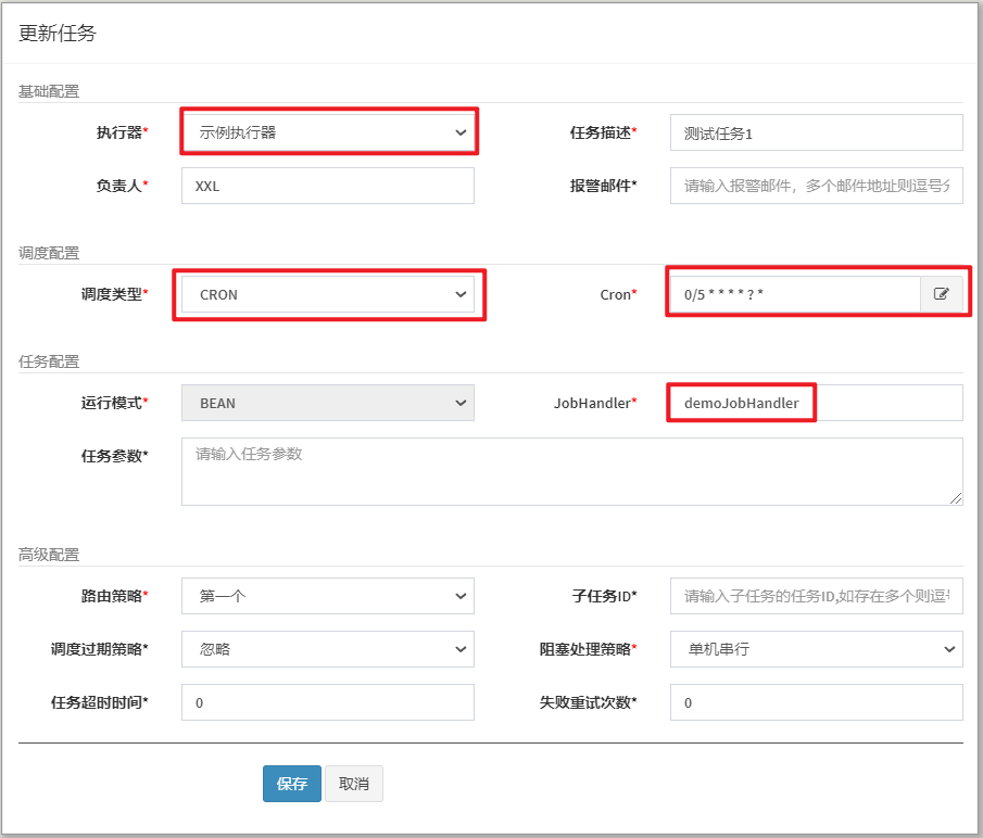 配置任务:在调度中心新建任务,在任务管理->新建,填写以下内容