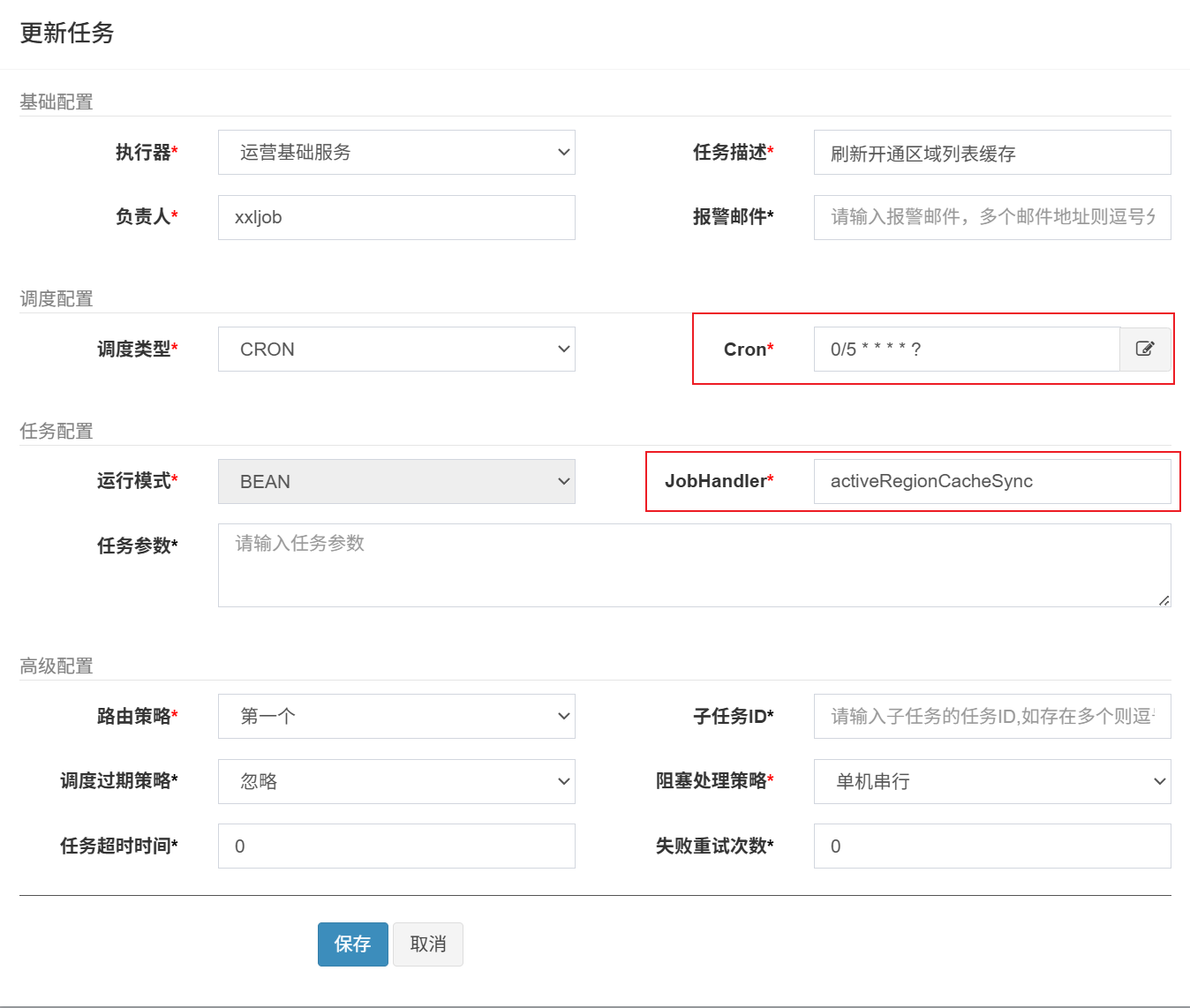 JobHandler:任务执行器名称,需要对应到代码对任务代码上@XxlJob注解对应的名称