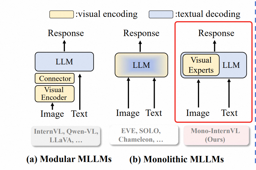 Mono-internvl: Pushing the boundaries of monolithic multimodal large language models with endogenous visual pre-training https://arxiv.org/pdf/2410.08202