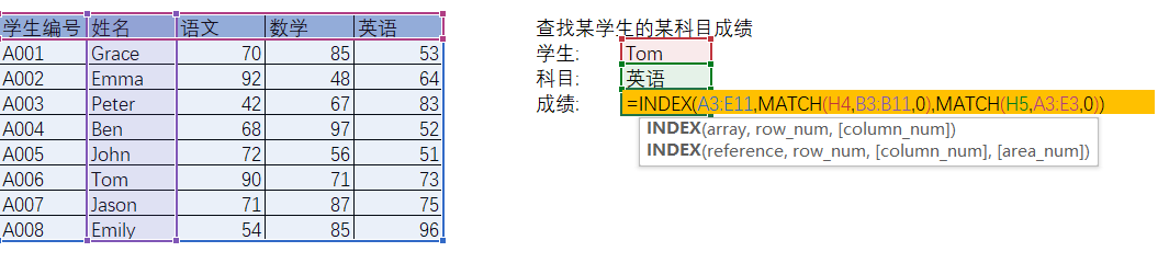 e.g. 要根据学生编号把学生姓名查找出来: