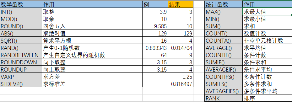 【数据分析-Excel】常用函数汇总