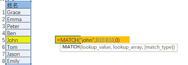 MATCH 函数用于在单行或单列的区域中查找指定值,并返回该值在区域中的相对位置(一个数字),而不是返回值本身。一般与INDEX函数复合使用。