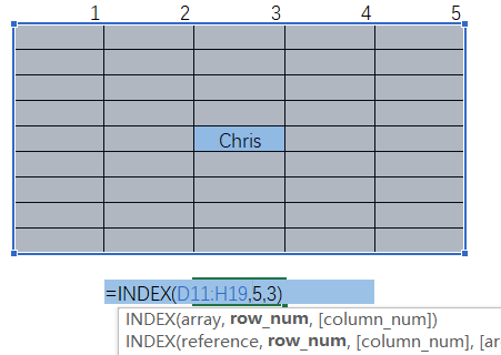 ①第一个参数先选中表,第二个参数是行号,第三个参数是列号;
