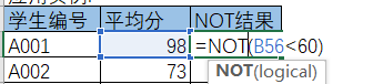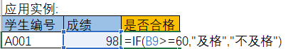 e.g. 学生的成绩不小于60,则返回TRUE,否则返回FALSE: