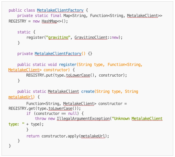 - 使用工厂方法,根据metalakeType选择合适的client。