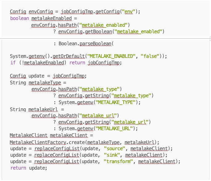 - 实现目标:将读取的metalake配置集成到任务的env中。