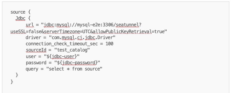 - 如果启用metalake且sourceId存在,则用户可将username和password等字段并设为占位符,然 后通过metalake接口查询数据源信息并占位符替换。
