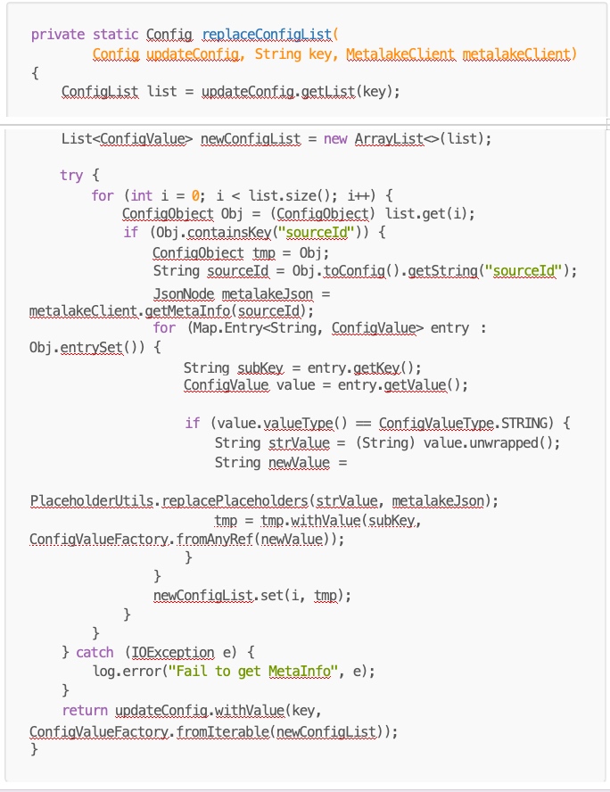 - 实现目标:通过metalake动态获取数据源信息,并替换配置中的占位符。