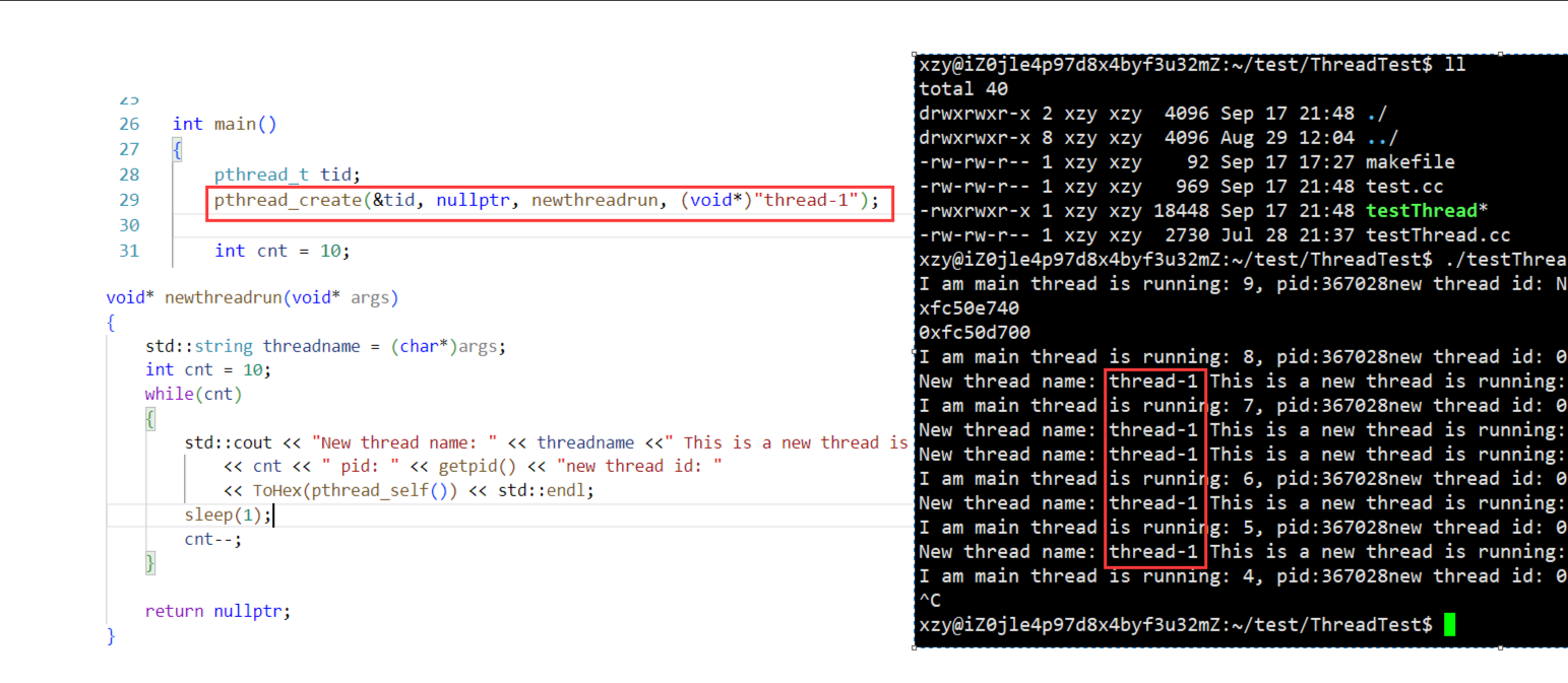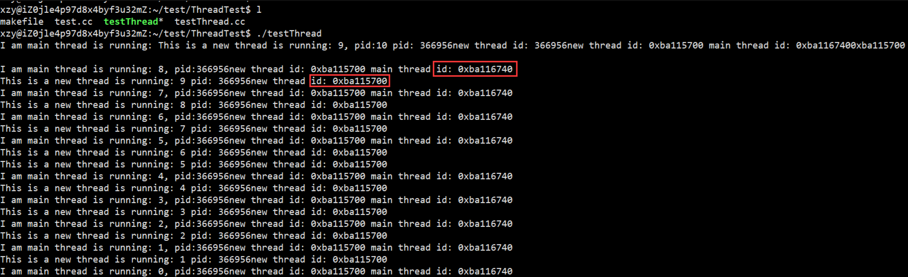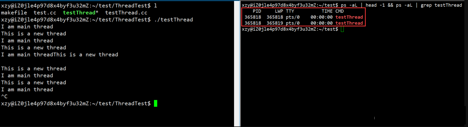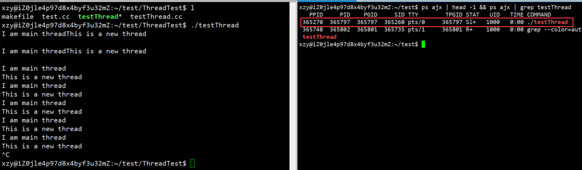 #include <iostream> #include <pthread.h> #include <unistd.h>// 新创建线程执行回调 void* newthreadrun(void* args) {while(true){std::cout << "This is a new thread" << std::endl;sleep(1);} }int main() {pthread_t tid;pthread_create(&tid, nullptr, newthreadrun, nullptr);while(true){std::cout << "I am main thread" << std::endl;sleep(1);} }makefile: