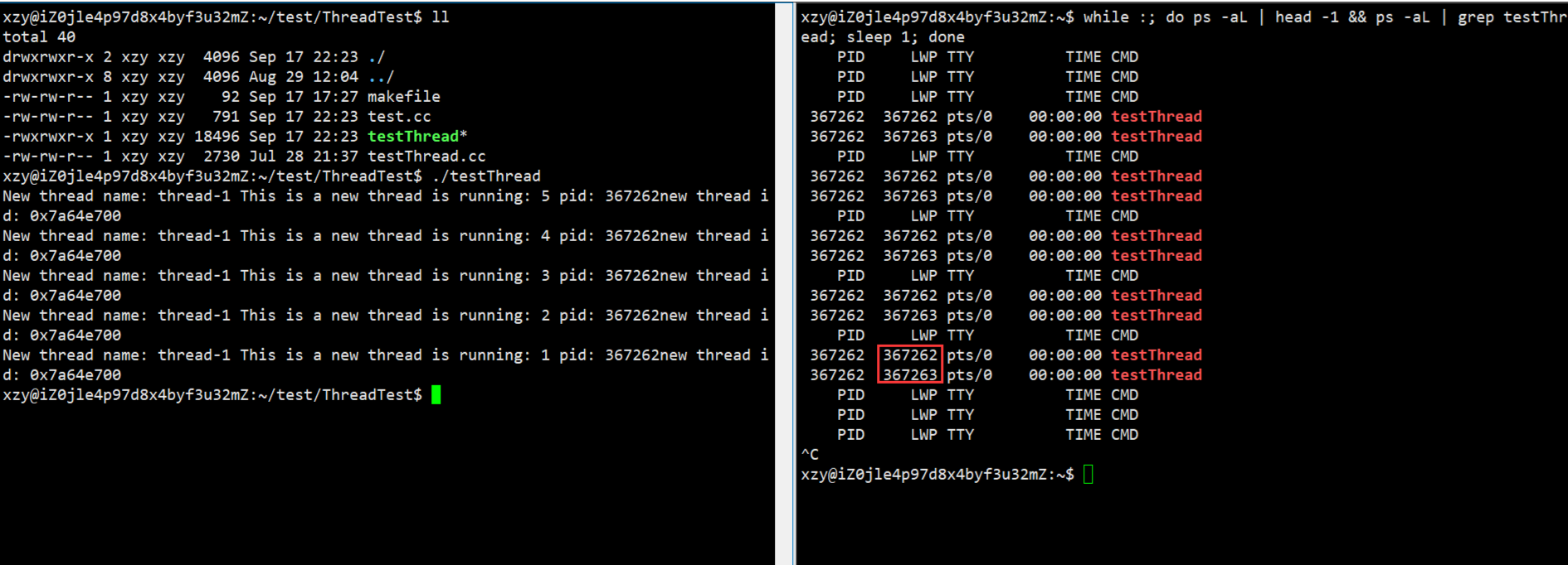 ps -aL | head -1 && ps -aL | grep testThread #L表示轻量级进程LWP