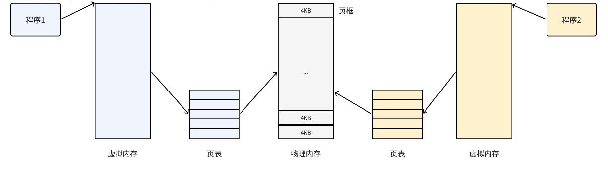 有了这种机制,CPU 便并⾮是直接访问物理内存地址,⽽是通过虚拟地址空间来间接的访问物理内存 地址。所谓的虚拟地址空间,是操作系统为每⼀个正在执⾏的进程分配的⼀个逻辑地址,在32位机 上,其范围从0 ~ 4G-1。操作系统通过将虚拟地址空间和物理内存地址之间建⽴映射关系,也就是⻚表,这张表上记录了每⼀ 对⻚和⻚框的映射关系,能让CPU间接的访问物理内存地址。总结⼀下,其思想是将虚拟内存下的逻辑地址空间分为若⼲⻚,将物理内存空间分为若⼲⻚框,通过 ⻚表便能把连续的虚拟内存,映射到若⼲个不连续的物理内存⻚。这样就解决了使⽤连续的物理内存 造成的碎⽚问题。