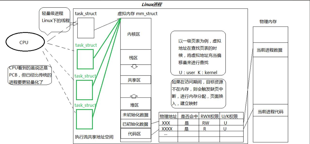 task_struct(与进程共用同一结构体)。- 同一进程的线程共享