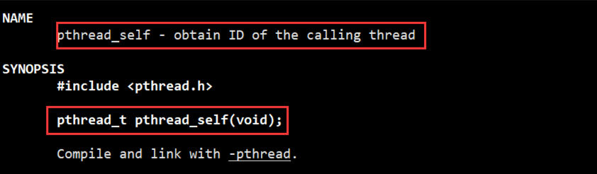 - 线程库NPTL提供了pthread_ self函数,可以获得线程⾃⾝的ID: