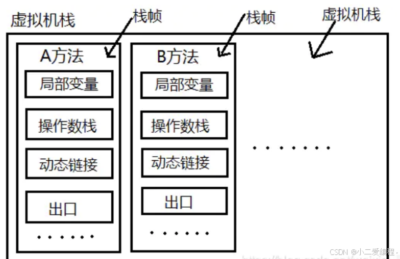 - 解释:虚拟机栈中是有单位的,单位就是栈帧,一个方法一个栈帧。一个栈帧中他又要存储,局部
