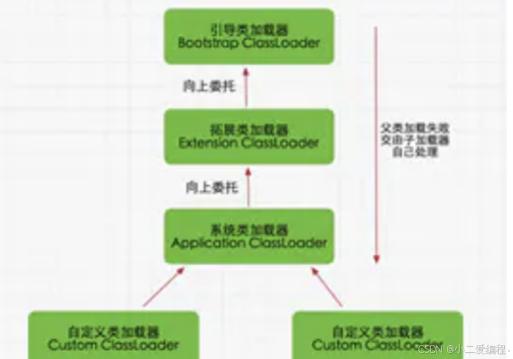子加载器才会尝试去加载类。总结就是: 当一个类收到了类加载请求时,不会自己先去加载这个类,而是将其委派给父类,由父类去加载,如果此时父类不能加载,反馈给子类,由子类去完成类的加载。