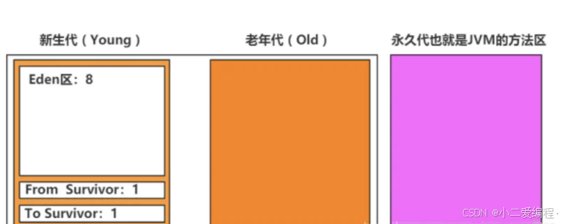 -XX:SurvivorRatio=n 年轻代中 Eden 区与两个 Survivor 区的比值。注意 Survivor 区有两个。8 表示两个Survivor :eden=2:8 ,即一个Survivor占年轻代的1/10,默认就为8