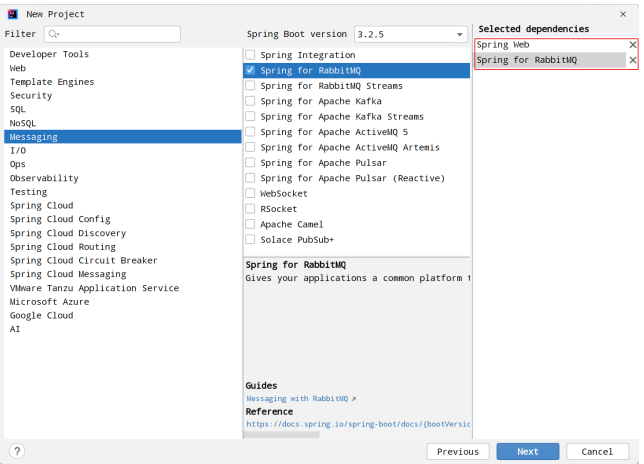 <dependency> <groupId>org.springframework.boot</groupId> <artifactId>spring-boot-starter-amqp</artifactId>