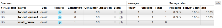 //声明2个队列,观察是否两个队列都收到了消息