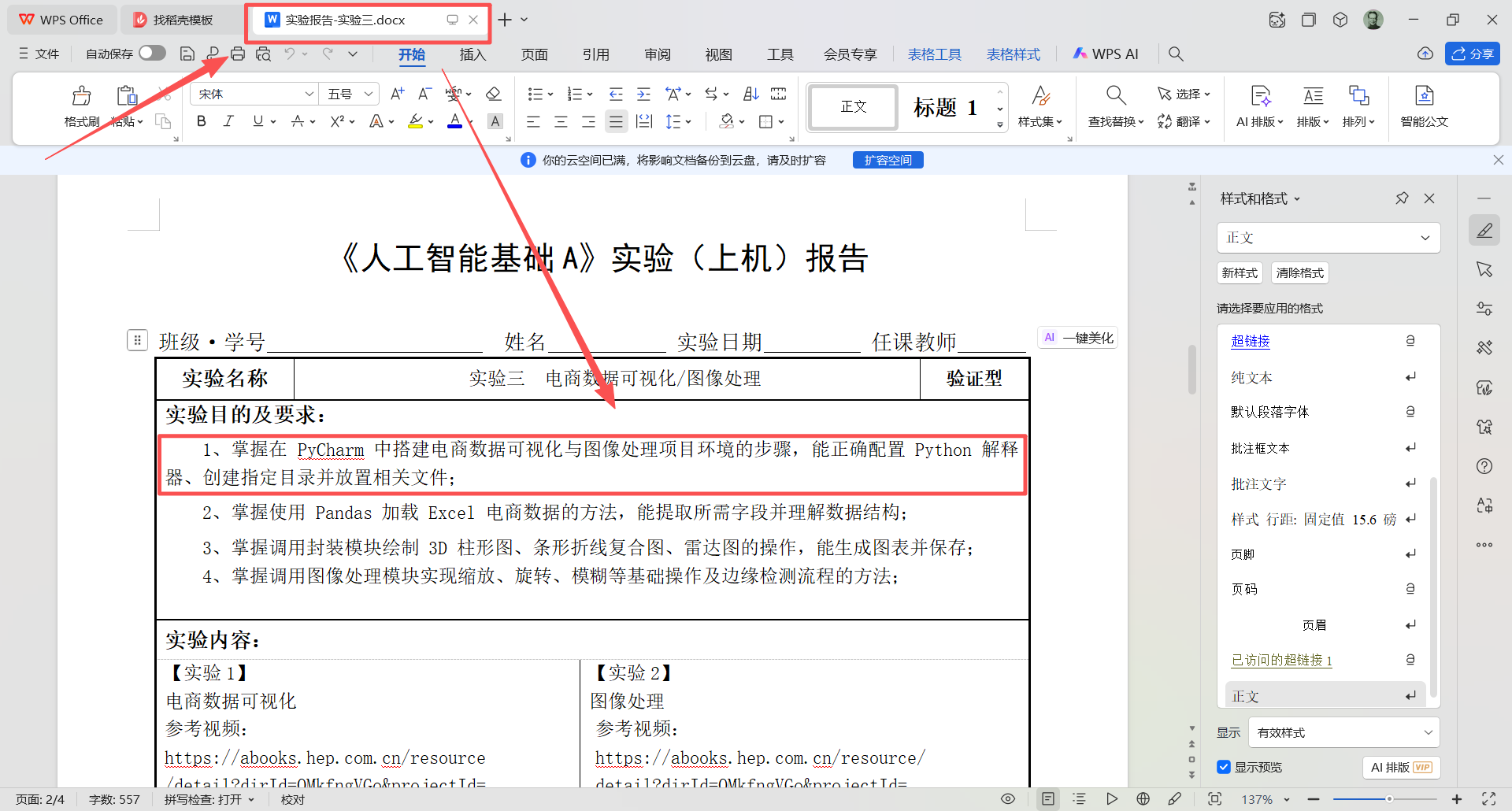 图 5 在 图 3 所示的目录(也称文件夹)名为 tg 的目录(也称文件夹)下面双击打开名为 实验报告-实验三.docx 的文件,看到如图所示内容,接下来分析需求,首先他要求安装pycharm,并配置Python 解释器(配置python解释器的意思是说,python解释器和pycharm是两个东西,pycharm是一个集成开发工具,这个开发工具本身并不具备运行python代码的能力,底层仍然是依赖python解释器运行代码,所以要先安装好python解释器,然后把python解释器的安装位置告诉pycharm这样pycharm才能调用python解释器执行程序)所以下一步的工作是下载安装pycharm