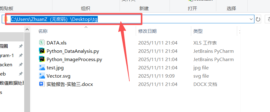 图 20 找到本文步骤一创建好的tg目录(也称文件夹),点击图中箭头所示的空白框区域,变成蓝色选中状态,手指同时按下键盘上的 ctrl和x这两个按钮,发现成功剪切(这是剪切的快捷键)了这个路径地址