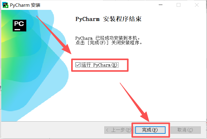 图 15 勾选运行pycharm,然后点击完成按钮