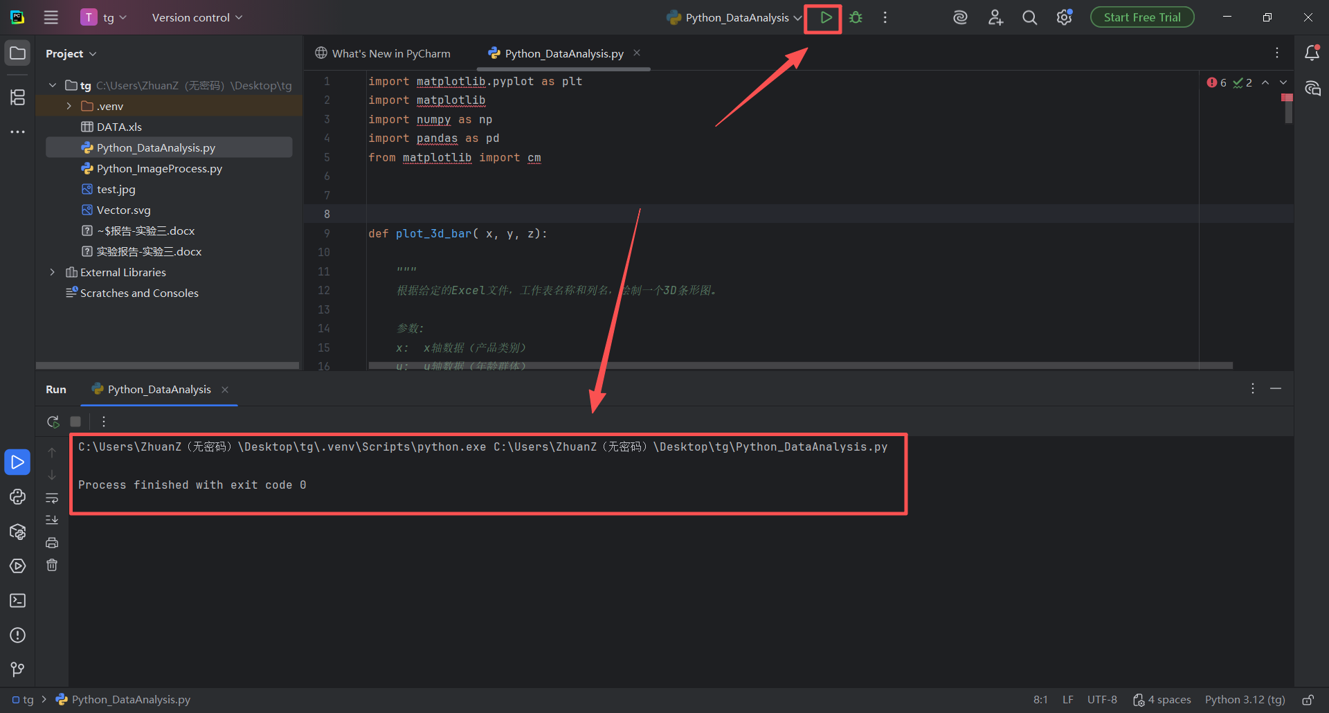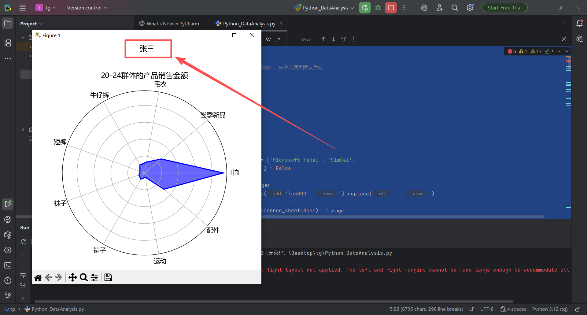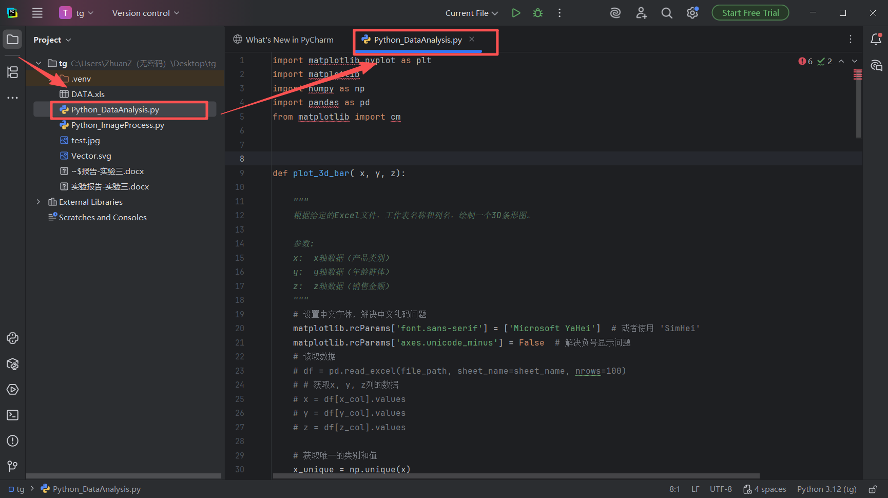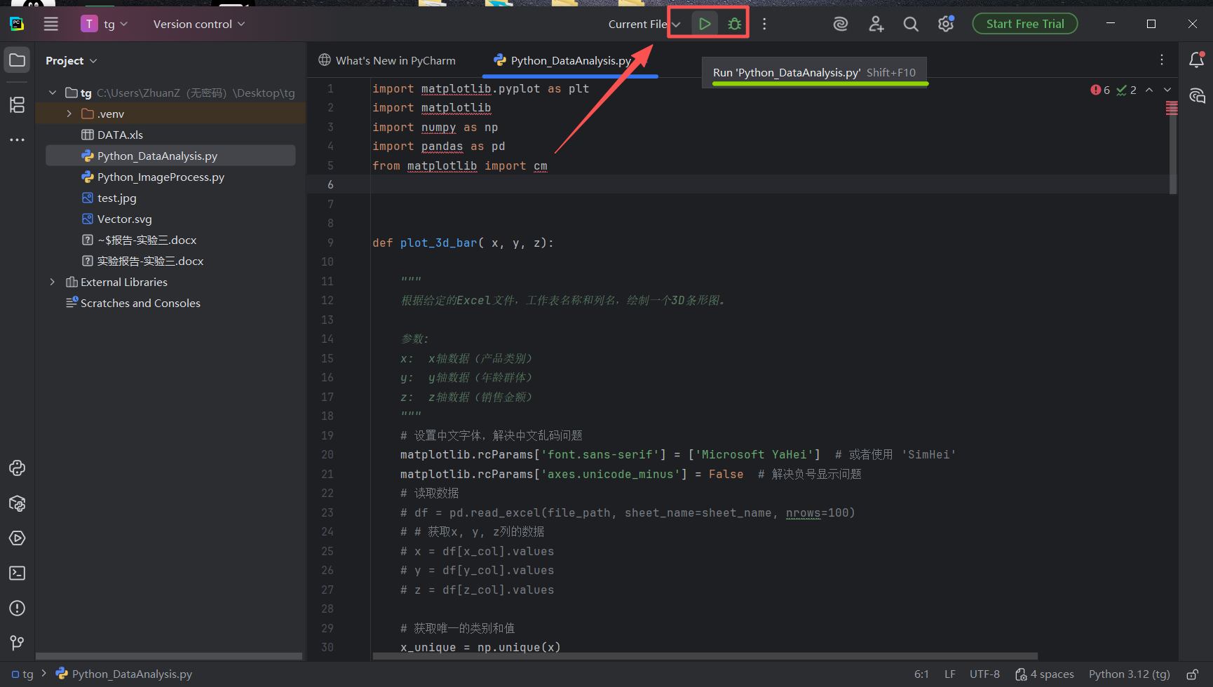 图 24 鼠标左键双击这个Python_DataAnalysis.py文件,pycharm会自动打开它,展示在右边