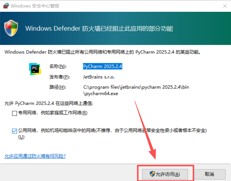 图 16 遇到这个弹窗点击允许访问按钮,通过防火墙请求,然后就属于完成了网络授权和初步安装
