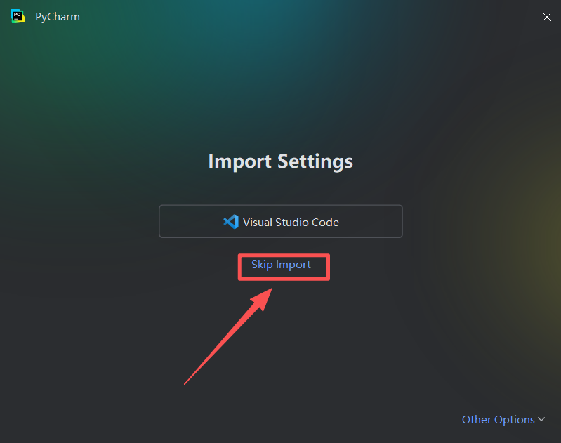 图 17 遇到这个页面直接点击 skip import 跳过引入(导入)的意思,因为我的电脑原先安装了别的集成开发工具,所以它识别到以后想要直接借用原有的设置跳过手动设置这一环节,我这里选择跳过导入