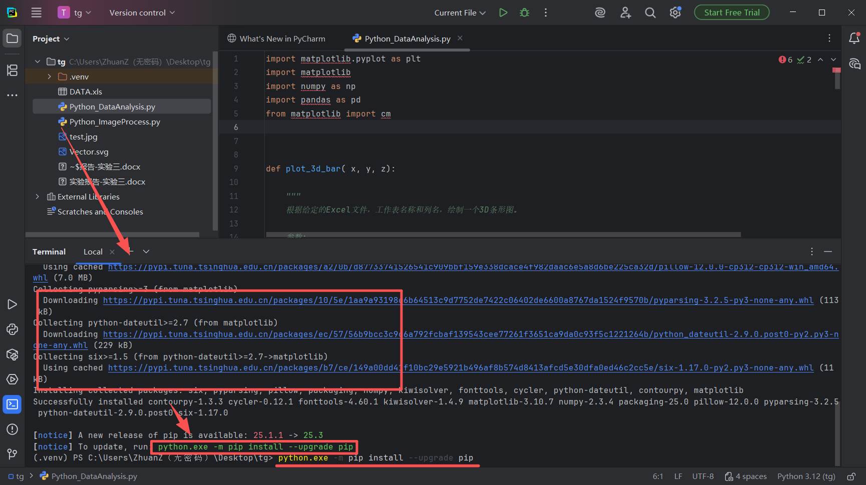 图 29 发现果然在下载一大片东西,报错提示请输入运行python.exe -m pip install --upgrade pip