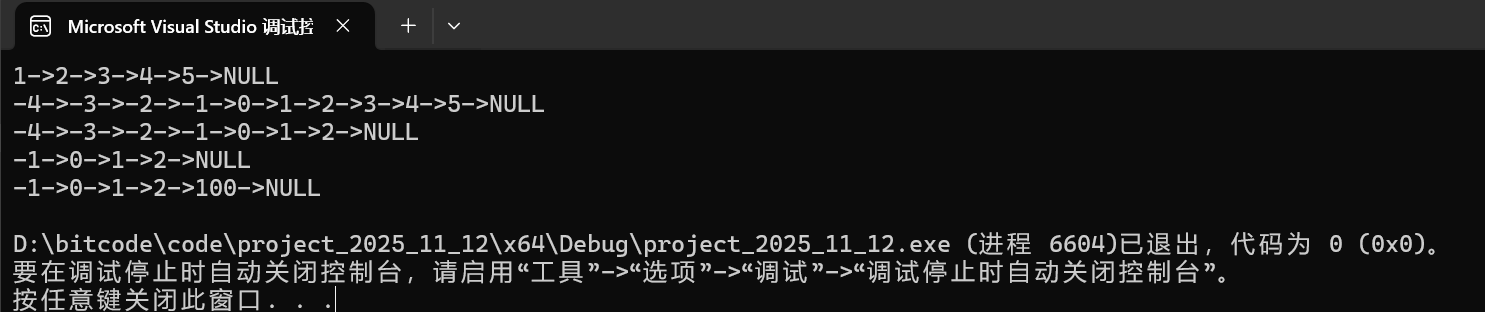 void LTPrint(LTNode* phead) {assert(phead);LTNode* p = phead->next;while (p!= phead) {printf("%d->", p->data);p = p->next;}printf("NULL\n");