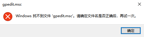 在Win10/11中,同时按下Win+R,输入【gpedit.msc】,显示找不到‘gpedit.msc’文件