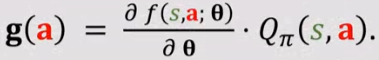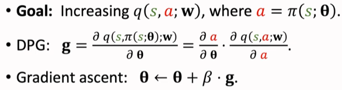 使得 q 打分更高,训练策略网络;链式法则 q -> a -> θ