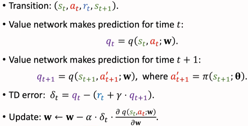 TD 算法更新价值网络,下一步的 a' 由策略网络得到。