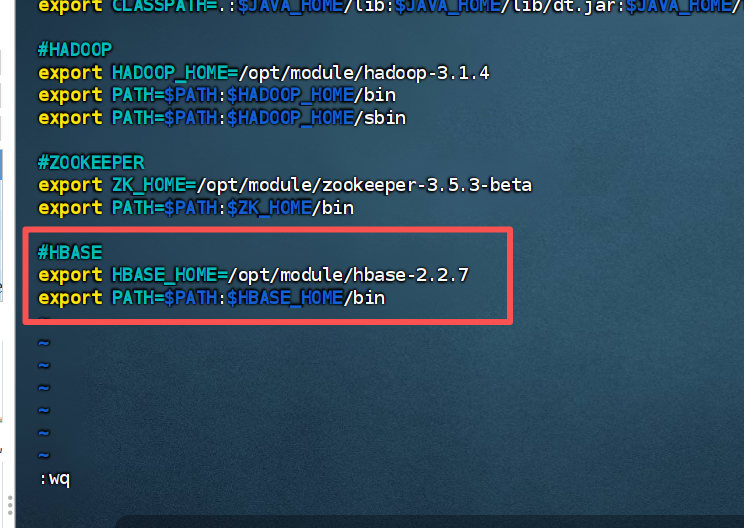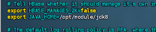 1.修改hbase-env.sh。导入安装的jdk,以及禁用内置zookeeper.