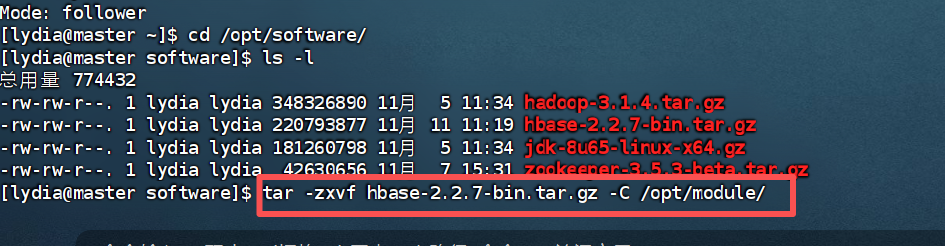 本次我们所需版本为hbase-2.2.7.下载上传到/opt/software。解压到/opt/module目录下。