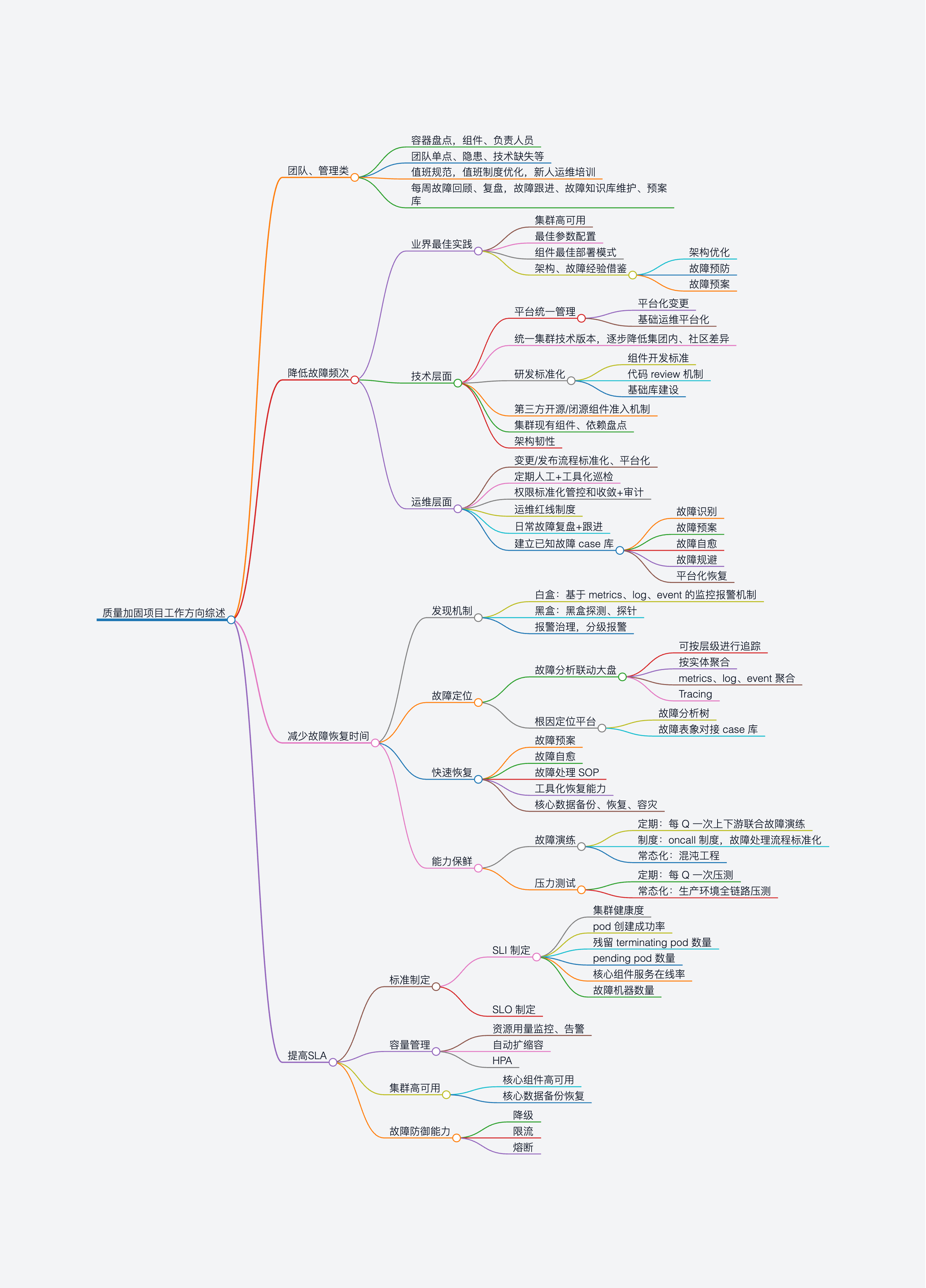 在本方案中,我们详细分析了当前平台面临的挑战,并提出了一系列针对性的质量提升措施。通过降低故障频次、缩短故障恢复时间、提高服务可用性等方向的努力,我们旨在构建一个更加健壮、高效和可靠的容器云平台。这些措施不仅能够提升平台的稳定性,还能增强我们对未知风险的应对能力,从而为集团的业务发展提供坚实的技术支撑。